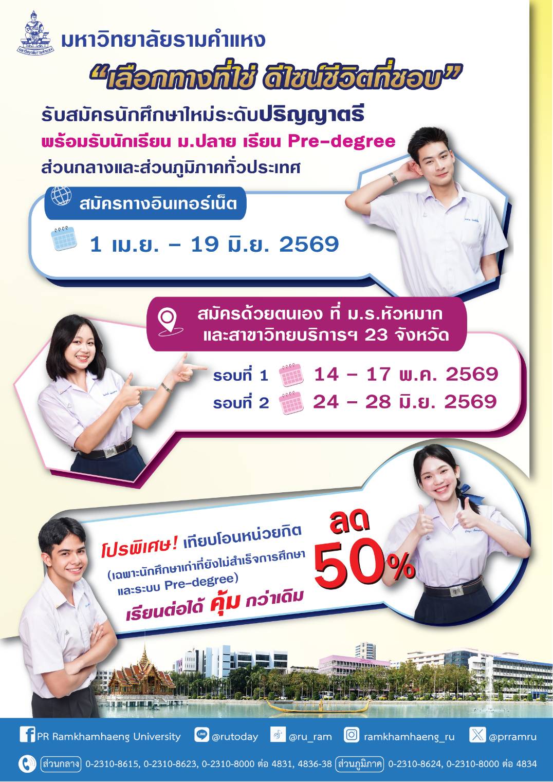 รับสมัครนักศึกษาใหม่ ภาค 1 ปีการศึกษา 2569