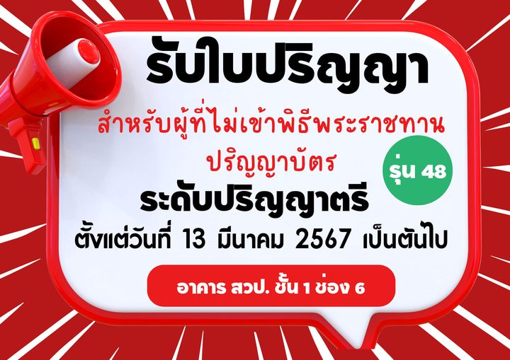 สำหรับผู้ที่ไม่ได้เข้ารับพระราชทานปริญญาบัตร ระดับปริญญาตรี รุ่น 48